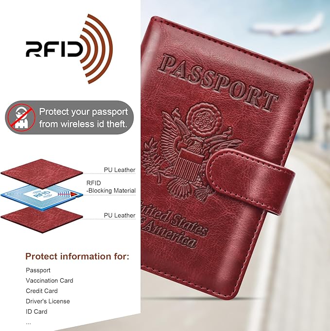 - 1. Magnetic Buckle Passport Holder: Our passport holder is designed with a hidden magnetic buckle for quick access to our passports and documents, bringing convenience to our travels, passport holder women men family is made of PU leather, soft and comfortable, waterproof and easy to clean