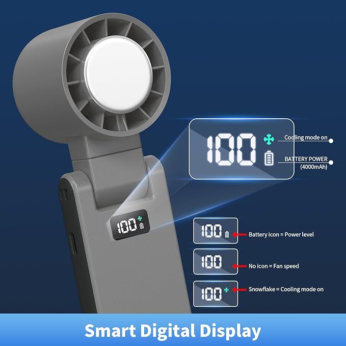 - Smart Digital Display for Easy Monitoring: The integrated screen clearly shows battery percentage, fan speed level, and cooling mode status, keeping you informed at a glance while on the go.