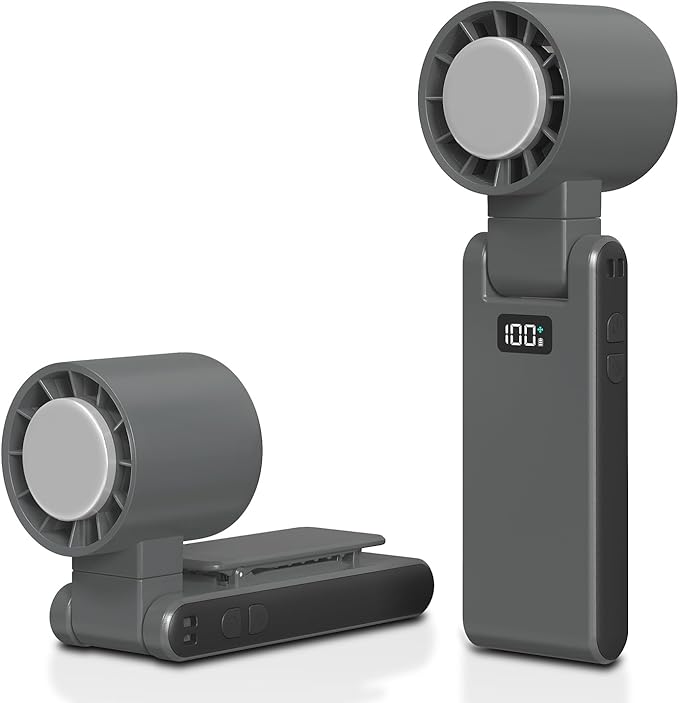OTPEIR Portable Handheld Turbo Fan with Cooling Tech, Digital Display, 100-Speed Control, Rechargeable 4-in-1 Personal Fan for Travel, Outdoor, Office (Grey)