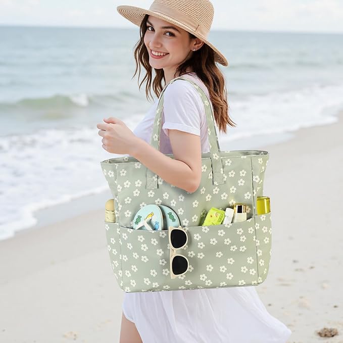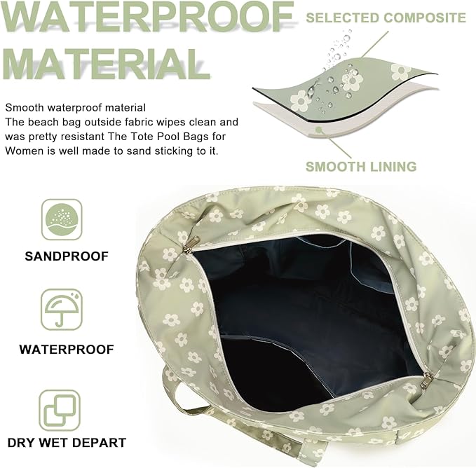 - Waterproof sandproof beach bag has tons of pockets and space for your towels, swim suits, flip flops, water bottles, glasses, sunblock, toys and any other things you'd like to take with you to the beach or pool, and interior pocket to place keys, your wallet or phone and other valuables