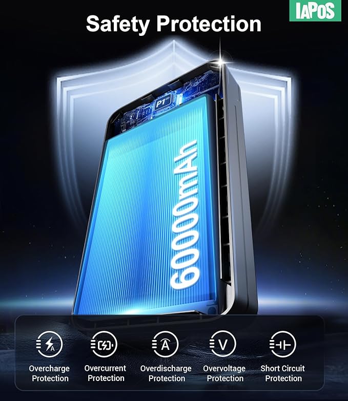 - [Large Power Bank Capacity]: The 60,000mAh portable charger with 1,000+ charge cycles (80% capacity retained) for lasting reliability. It's smart LED display shows precise 1% charge status—no guessing on power levels. From blackouts to storms, the IAPOS powerbank keeps you powered through crises.