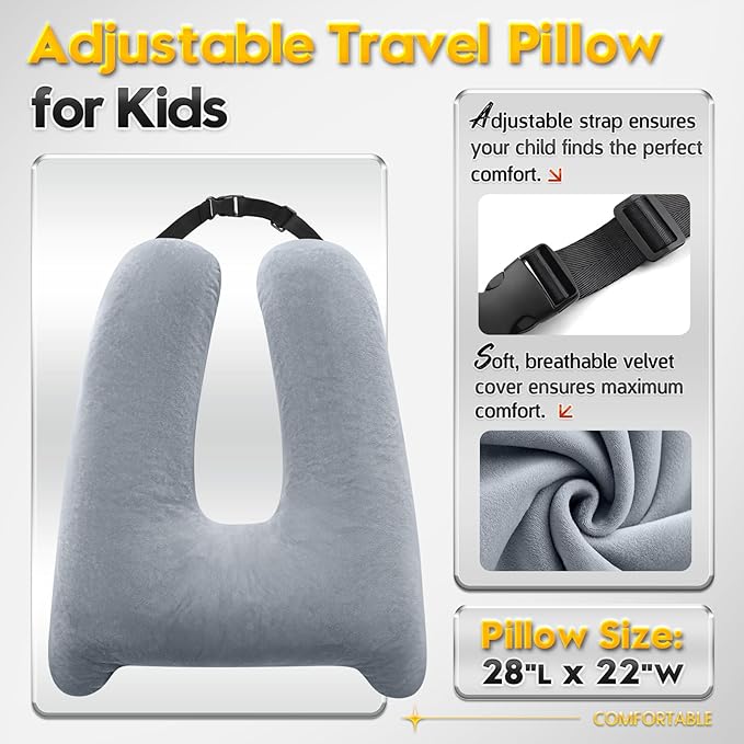 - Help Your Kids Enjoy Car Sleeping: Children usually feel tired and cannot sleep well during long trip, our ergonomic travel pillow for kids offers support for head, neck and arms, helping children find comfortable sleeping positions during long road trip