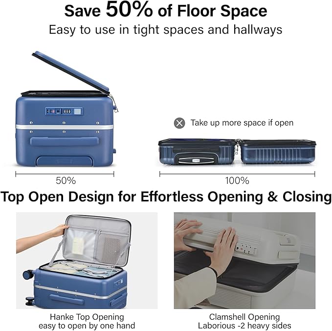 - 【Save Space & Effort】The top opening hard shell luggage is a real space-saver in a tight space compared to a suit case that zips open in the middle and has to spread out.And the top opening luggage can be opened easily with one hand, is user friendly for elder, children and someone with less effort strength.