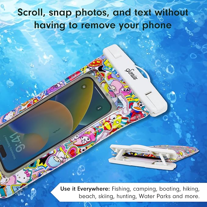 Sonix x Sanrio Waterproof Phone Pouch - Floating Phone Case Dry Bag w/Crossbody Lanyard - Beach Cruise Travel Essentials - Compatible w/All Devices, Touchscreen Friendly | Hello Kitty Stickers