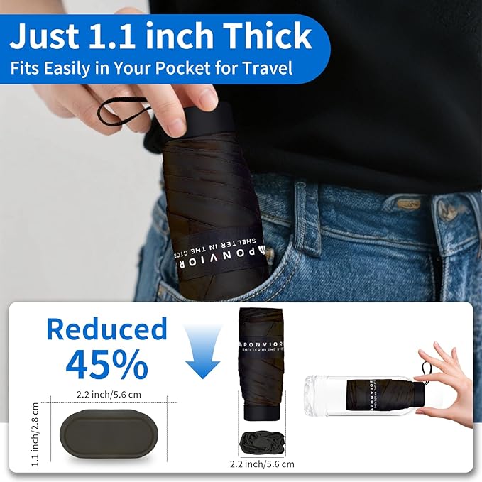 - 【Ultra-Portable & Lightweight Design】 - Folds down to just 5.5 inches (smaller than most wallets) and weighs only 7 oz (lighter than your smartphone!), making it one of the lightest and most small umbrella for travel mini available. Ideal for compact travel, family outings, or even kids' backpacks storage
