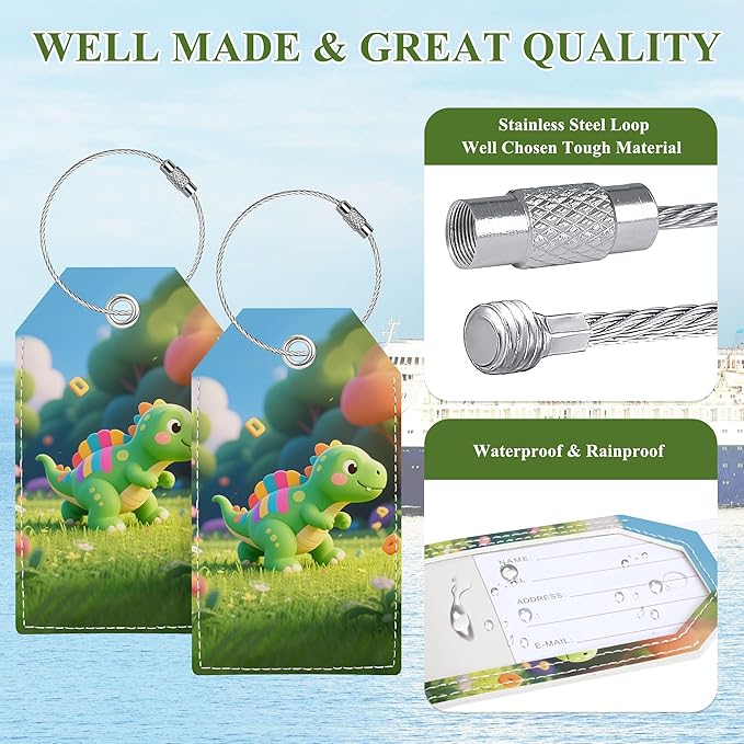 Luggage Tags for Suitcases, Luggage Tag, Personalized Bag Tags for Backpacks Handbag School Instrument with Name ID Label Travel Essentials, Cute Unique Fun Baggage Tags 2 Pack, Stegosaurus