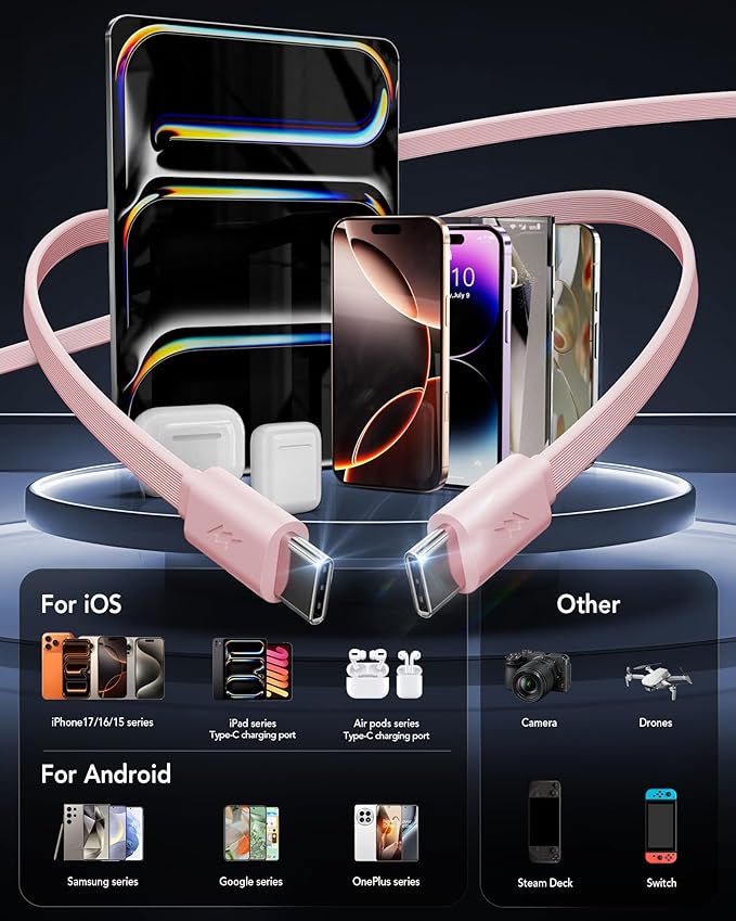 - 【40W Fast Charger for 4 Devices】The retractable iPhone charger with wall plug has two USB ports and dual retractable Type-C cables, which can charge 4 devices at the same time. Whether it is powering an iPhone, an Android phone (Galaxy, Pixel, etc.), or tablets, it can provide up to 40W fast charging capability.