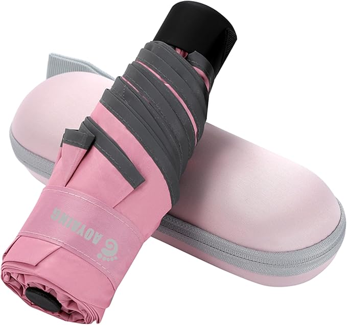 GAOYAING Mini Compact Travel Umbrella with Reflective Safety Stripes, Portable Folding Design with Case