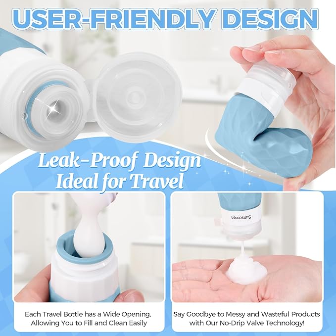 - 【FOOD GRADE BPA FREE SILICONE】Travel Size Toiletries Containers Set includes 4 silicone travel bottles, 4 travel silicone cream jars, and 2 silicone bottle covers made from BPA-free premium silicone, meaning your items won't be contaminated by toxins. Use your daily personal care items anywhere