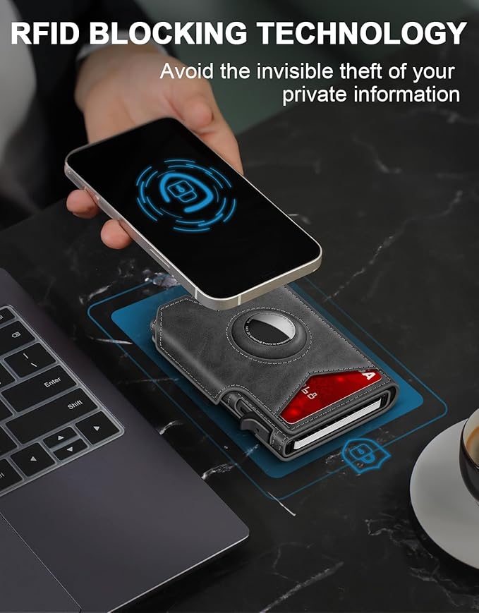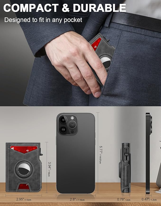 • UPGRADED AIRTAG DESIGN: IITRRS wallet with airtag holder is designed with a dedicated Airtag hole, making it simple and easy to fix the Airtag in place. With this feature, you can effortlessly locate your wallet anytime, anywhere, ensuring you never lose your smart wallet again. (*Airtag is not included).
