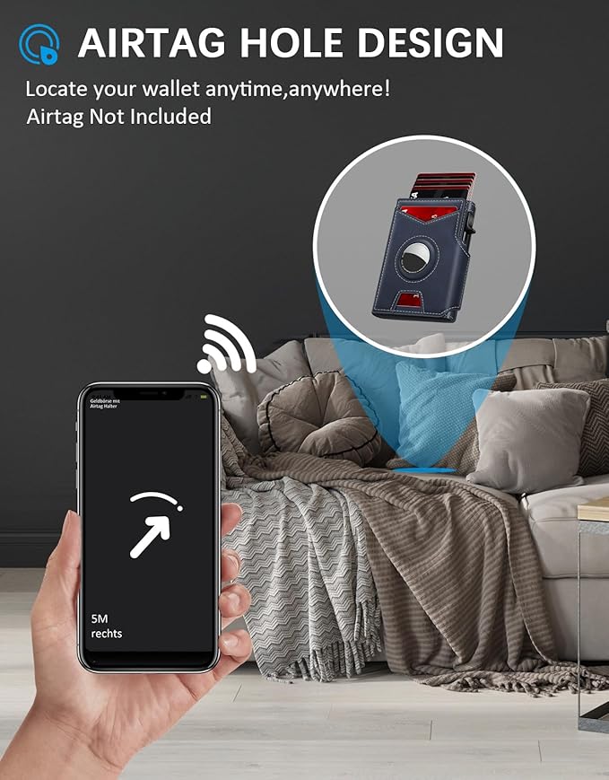 - UPGRADED AIRTAG DESIGN: IITRRS wallet with airtag holder is designed with a dedicated Airtag hole, making it simple and easy to fix the Airtag in place. With this feature, you can effortlessly locate your wallet anytime, anywhere, ensuring you never lose your smart wallet again. (*Airtag is not included).
