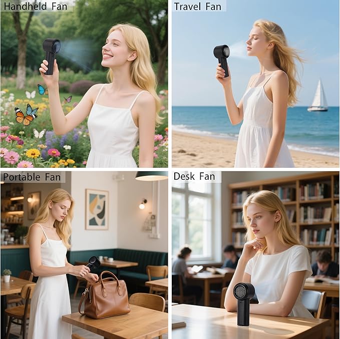 - 【5-Speed Turbo Boost】 Customize your cooling with this portable handheld turbo fan—5 wind settings from soft breeze to powerful turbo airflow. Ideal for home, office, or travel, adapt to any heat instantly.