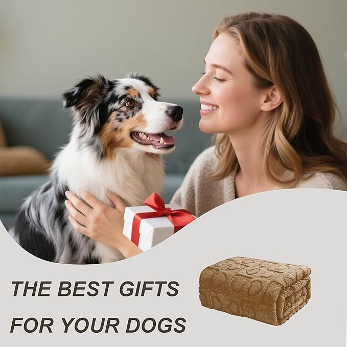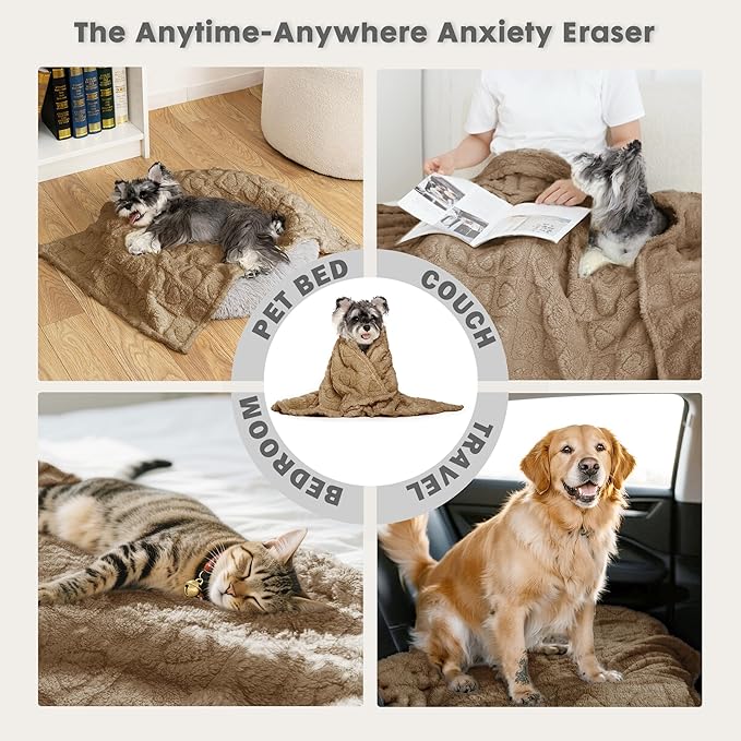 gogobunny Calming Plush Dog Cat Blanket 300GSM Coral Fleece, Ultra-Soft Machine Washable Pet Bedding for Small Medium Dogs Cats Puppies Kittens (Brown, 30x40)