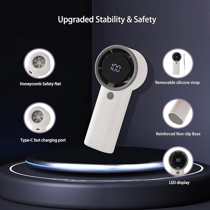 2025 Upgraded Portable Handheld Turbo Fan with 20-Hour Battery - Rechargeable Mini Fan with Digital Display, Anti-Slip Base, 5000mAh Capacity - Personal Fans for Travel, Vacation, Beach(White)