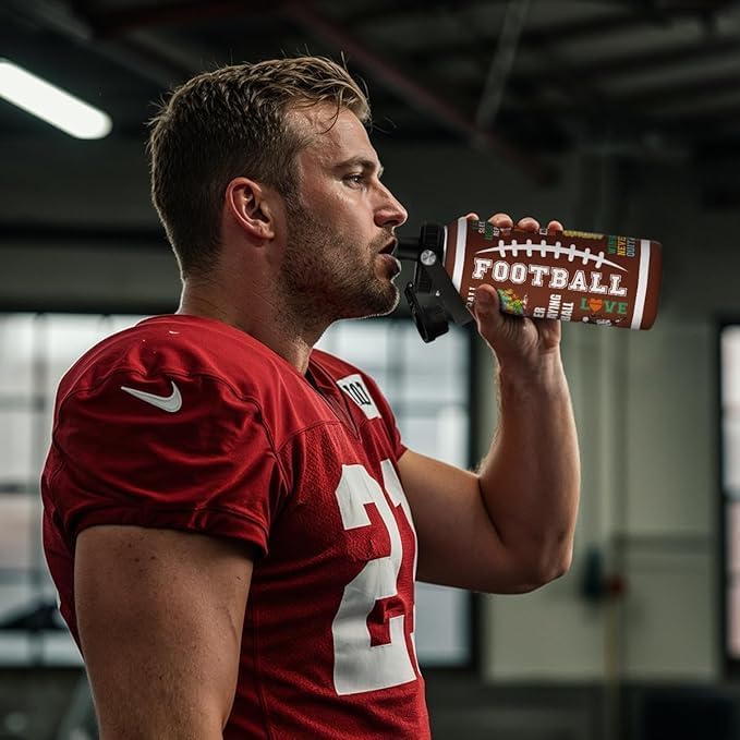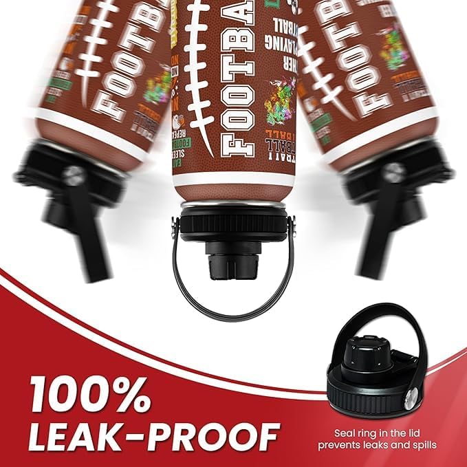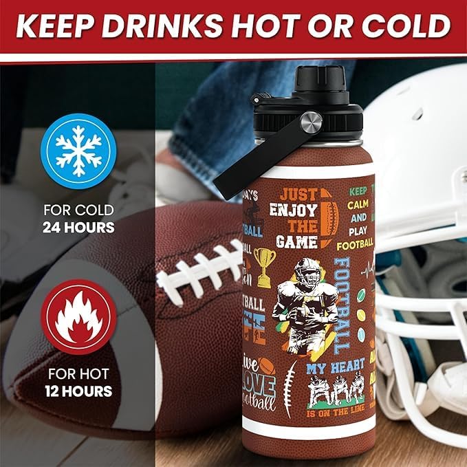 American Football Insulated Stainless Steel Water Bottle 32oz, Vacuum Chug Lid Travel Tumbler for Men Friends Dad Football Lovers Fans Coaches, Gift for Birthday Christmas Father's Day