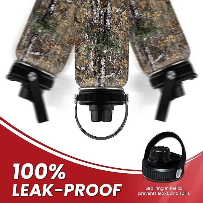 Camouflage Insulated Stainless Steel Water Bottle 32oz, Vacuum Chug Lid Travel Tumbler for Men Friends Dad Hunter Hunting Lovers, Gift for Birthday Christmas Father's Day