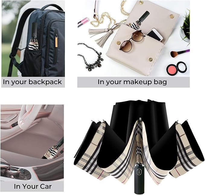 - WIDELY USED: Multiple colors (Yellow Plaid, Navy, Wine, Starry Sky, High Clouds, Black) pair easily with workwear or athleisure. Compact umbrella that fits backpacks, totes, center consoles for easy-carry, making it a portable umbrella.