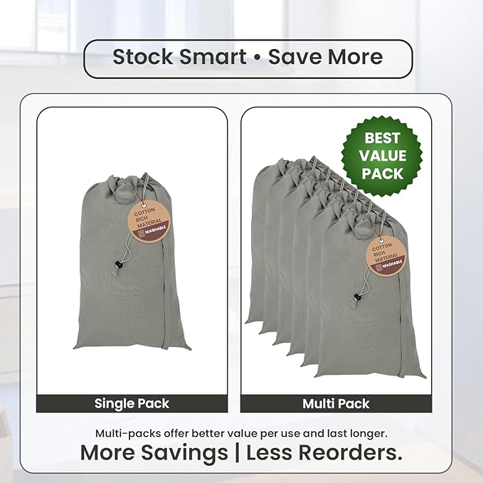 LFH Home Cotton Canvas Large Laundry Bag with Handle, Heavy Duty Drawstring Closure Washable Laundry Bags, School Travel, Home, Hotel, College Dorm, Organizer Sack, Toys Clothes 28x36 (Pack of 6)-Grey