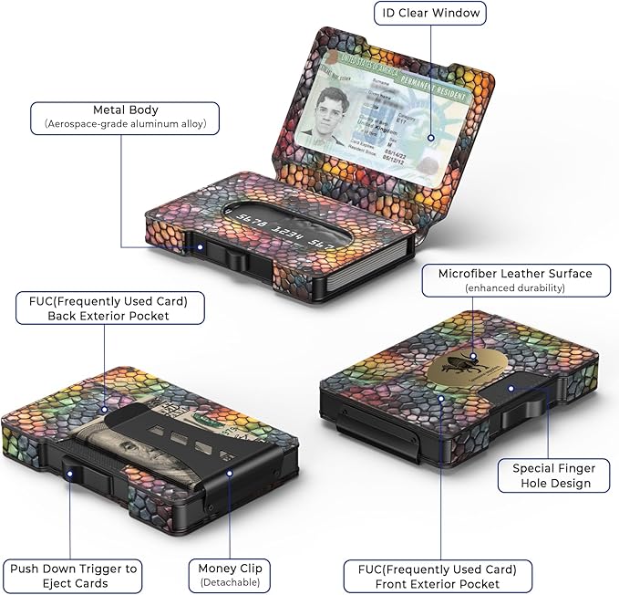 - 【High Quality & Minimalism】Precision-crafted from aerospace-grade aluminum alloy, our mens wallet redefines durability and sophistication. Despite this minimalist wallet for ment ultra-slim profile, it comfortably accommodates 7-8 cards and 5-10 bills, delivering spacious functionality without compromising on sleekness.