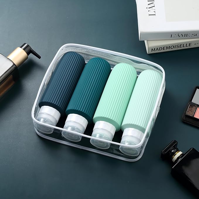 - Oversize 6oz travel bottle: Featuring a PVC toiletry bag, these travel-sized silicone bottles are perfect for storing and dispensing your favorite shampoos, lotions, and other liquids. Designed for convenience and durability, this travel set is a must-have for all your adventures.