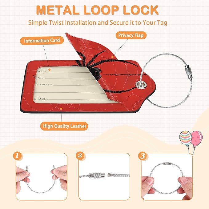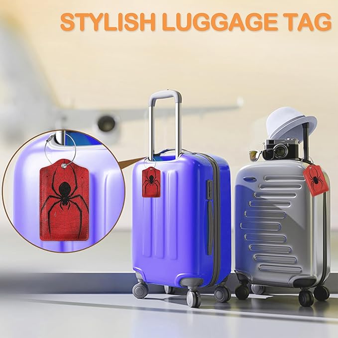 Red Web Spider 3 PCS Luggage Tags, Black Hanging Spider Leather Suitcase Tags with Privacy Cover Name Address Labels and Durable Steel Loop for Men/Women Travel Bag Suitcases