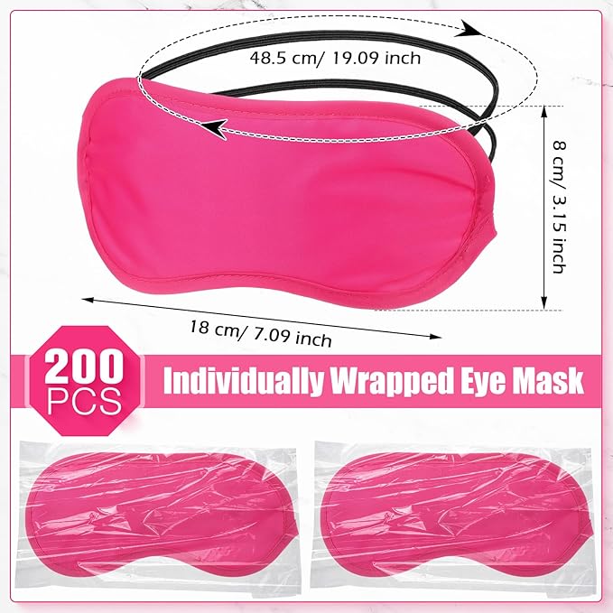Tarpop 200 Pcs Eye Mask Sleeping Blindfold Eye Cover with Adjustable Strap for Games Party Team Building Travel Individually Wrapped Sleep Mask for Women Men (Rose Red)