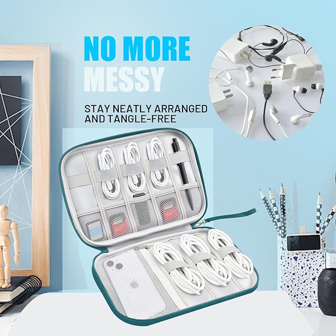 - 🚇Efficient Organization: Featuring a compartment design, our travel charger organizer allows you to efficiently store and access your travel accessories, including cords, chargers, and tech devices. The well-organized layout ensures that your electronics stay neatly arranged and tangle-free, making it easy to grab what you need on the go. It’s a great cable organizer and charger case all in one
