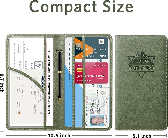 - 6 Comparments: Comes with 3 large pockets for insurance documents, vehicle registrations cards and other valueable information. And 3 small pocket for driver's license, ID cards, business cards, key contact information cards.