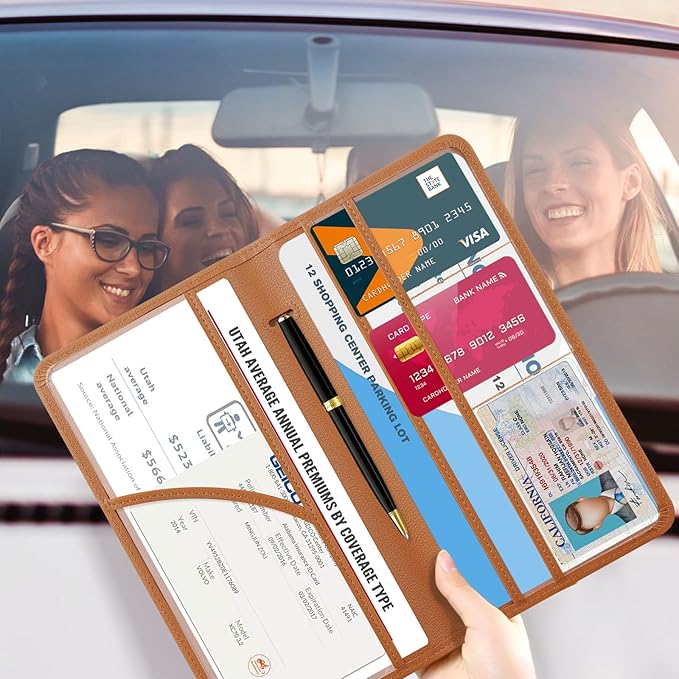 - 6 Comparments: Comes with 3 large pockets for insurance documents, vehicle registrations cards and other valueable information. And 3 small pocket for driver's license, ID cards, business cards, key contact information cards.