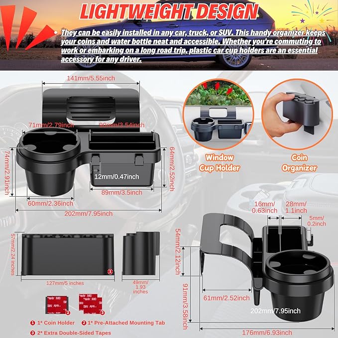 - Versatile Accessories for Your Car - The car accessories include a hanging cup holder and a coin organizer holder. This cup holder is a universal accessory that can be easily installed in any car, truck, van, or SUV. Enhancing your driving experience by maximizing storage space and maintaining cleanliness. Perfect for long drives or daily commutes.