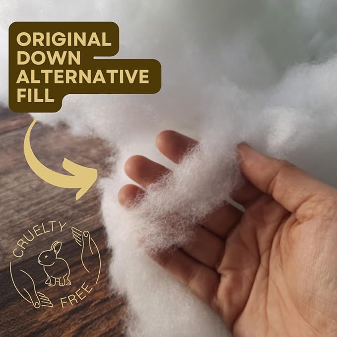 - HYPOALLERGENIC DOWN ALTERNATIVE FILL – Filled with cruelty-free polyester fibres that mimic the softness and loft of natural down. Lightweight, hypoallergenic, and durable, this fill doesn't clump.