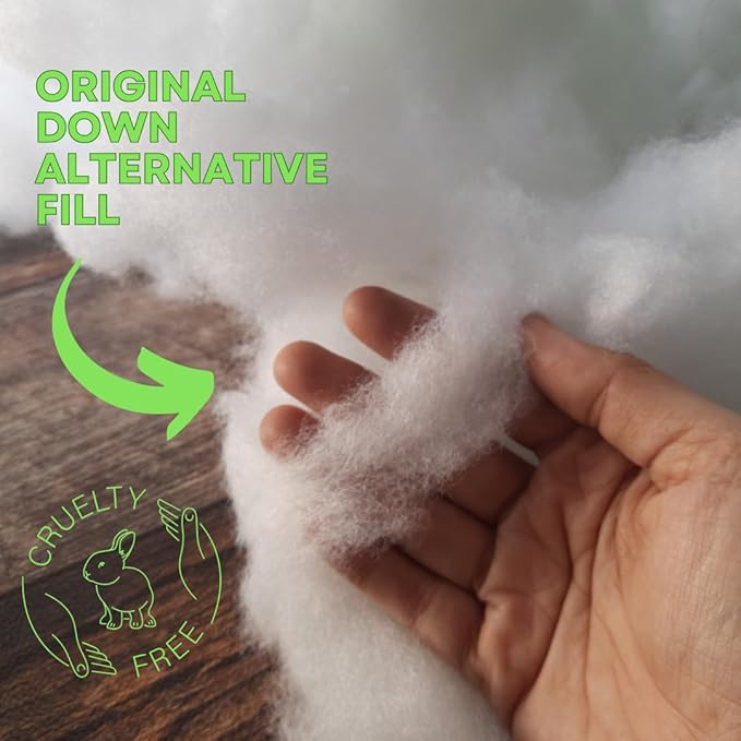 - HYPOALLERGENIC DOWN ALTERNATIVE FILL – Filled with cruelty-free polyester fibres that mimic the softness and loft of natural down. Lightweight, hypoallergenic, and durable, this fill doesn't clump.