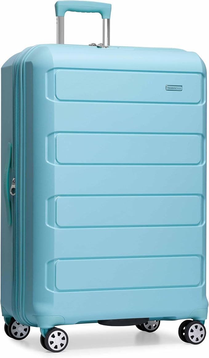 Traveler's Choice Pagosa Indestructible Hardshell Expandable Spinner Luggage, Baby Blue, 30-Inch Large