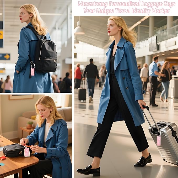 - 8 Vibrant Colors: Choose from 8 eye-catching metallic shades (Black, Blue, Red, Gold, Green, Purple, Pink, Lake Blue), each shifting hues with the light. Available in two sizes (3"×1.2" & 3.5"×1.9"), the tags stand out on crowded baggage carousels. The matte finish adds sophistication while enhancing durability