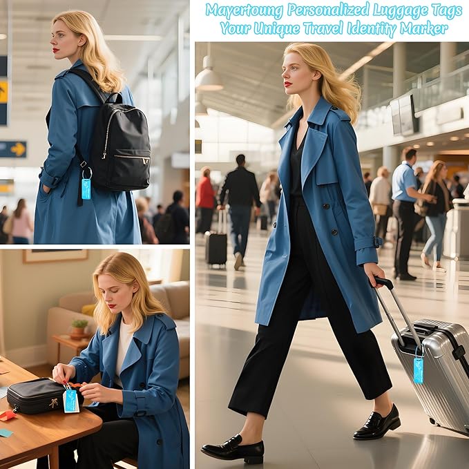 - 8 Vibrant Colors: Choose from 8 eye-catching metallic shades (Black, Blue, Red, Gold, Green, Purple, Pink, Lake Blue), each shifting hues with the light. Available in two sizes (3"×1.2" & 3.5"×1.9"), the tags stand out on crowded baggage carousels. The matte finish adds sophistication while enhancing durability