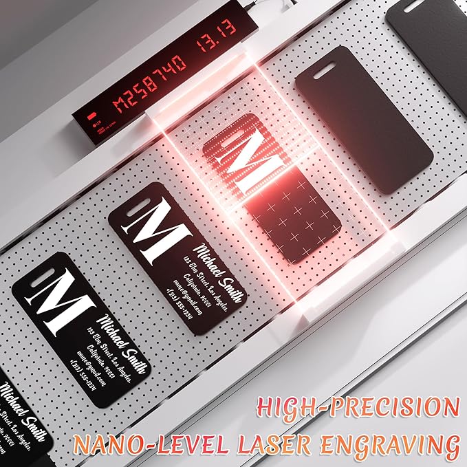 - Permanent Laser Engraving: High-precision laser etching creates durable white engravings that resist peeling, fading, and wear. Add names, logos, or contact info for long-lasting identification—perfect for reclaiming lost luggage. Sharp contrast ensures lasting readability