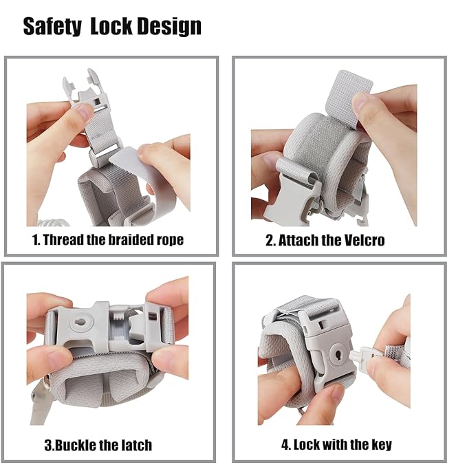 - Secure Lock Design: Our toddler safety wristband features a unique key lock design, with the key attached to the adult wristband. The double safety clasp prevents children from removing the wristbands themselves. Unlock your child easily when needed using the included key.