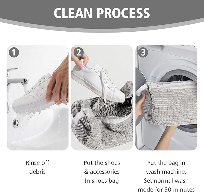 - Rust-Resistance Zipper: Shoes laundry bag for washing machine pair with a invincible zipper design that the zipper is covered by rubber band to prevent the zipper would not loosen or open during washing. Rubber band of shoe laundry bag also avoid the zipper scratching other clothes. Shoes cleaning bag is easily hanged and storage with a elastic top strap.