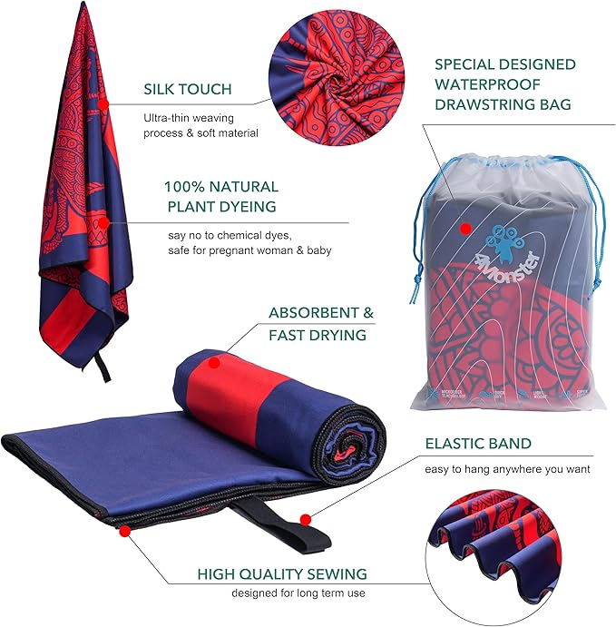 4Monster Microfiber Beach Towel Quick Dry,Super Absorbent Lightweight Travel Towel for Swimmers, Sand Free Camping Towel, Beach Towels for Pool,Swim,Water Sports,Yoga