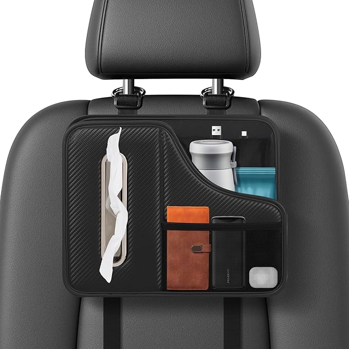 - 【The Car Upgrade Gift】Surprise practical parents with this back seat organizer for kids that outshines basic tissue organizer for car options. More than a car back seat storage item, it’s a clutter-free lifestyle essential for snack management (car snack organizer), drink stability, and tissues for car headrest accessibility. Folds flat when unused. It is better to act than to be impressed. Try it !