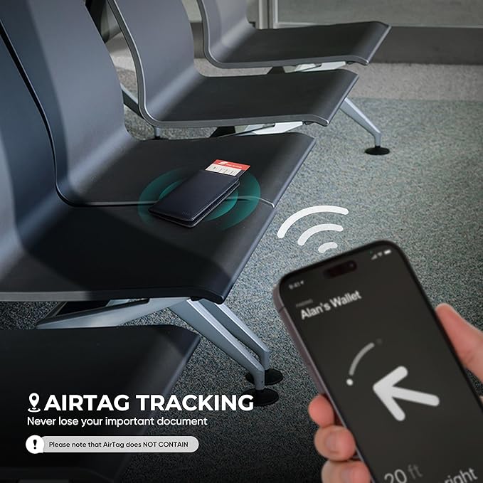 - DESIGN FOR AIRTAG- No more worrying about losing your important documents. This passport wallet is compatible with Airtag, so you can make sure your documents are not left behind at airports, hotels or shopping centers with the powerful tracking feature. Please note that Airtag is NOT included.