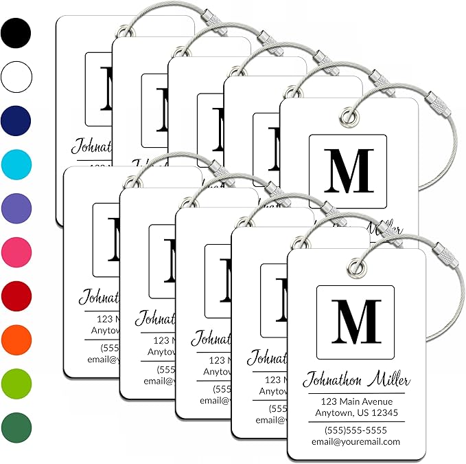- Fully Customizable: Personalize your luggage tags with up to 5 lines of text — perfect for names, addresses, contact info, or personal messages. Make it your own with choice of font and text color!