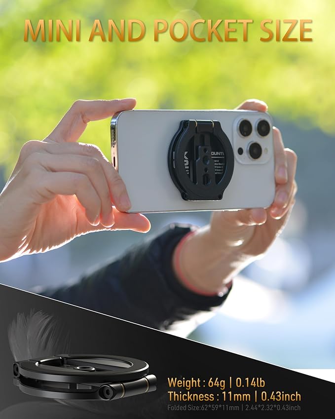 - ๐๐จ๐ฆ๐ฉ๐๐๐ญ ๐๐ง๐ ๐๐ฅ๐ญ๐ซ๐๐ญ๐ก๐ข๐ง ๐๐๐ฌ๐ข๐ ๐ง : With a folded thickness of just 0.32 inches and a diameter of 2.4 inches, this holder is incredibly slim and lightweight at only 64 grams (2.3 ounces). Smaller than the palm of your hand, it easily fits into your backpack or attaches magnetically to the back of your phone for ultimate portability. Its space-saving design offers unmatched convenience, and the durable folding mechanism ensures it stays secure even after repeated use.