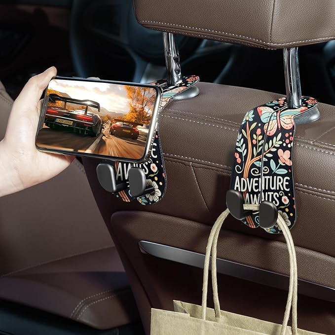 - Oversized 2-in-1 Double Hook Design:The 0.78-inch oversized car purse hook easily manages various handbags, bags and purse, keeping your car space organized and clutter-free