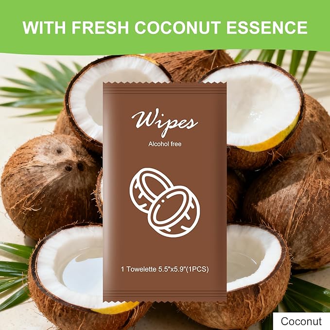 Individual Hand Wipes,Wet Wipes Individually Wrapped Bulk Cleansing Travel Size Wet Wipes for Wedding Travel Restaurant Barbecue(coconut,pack of 50)