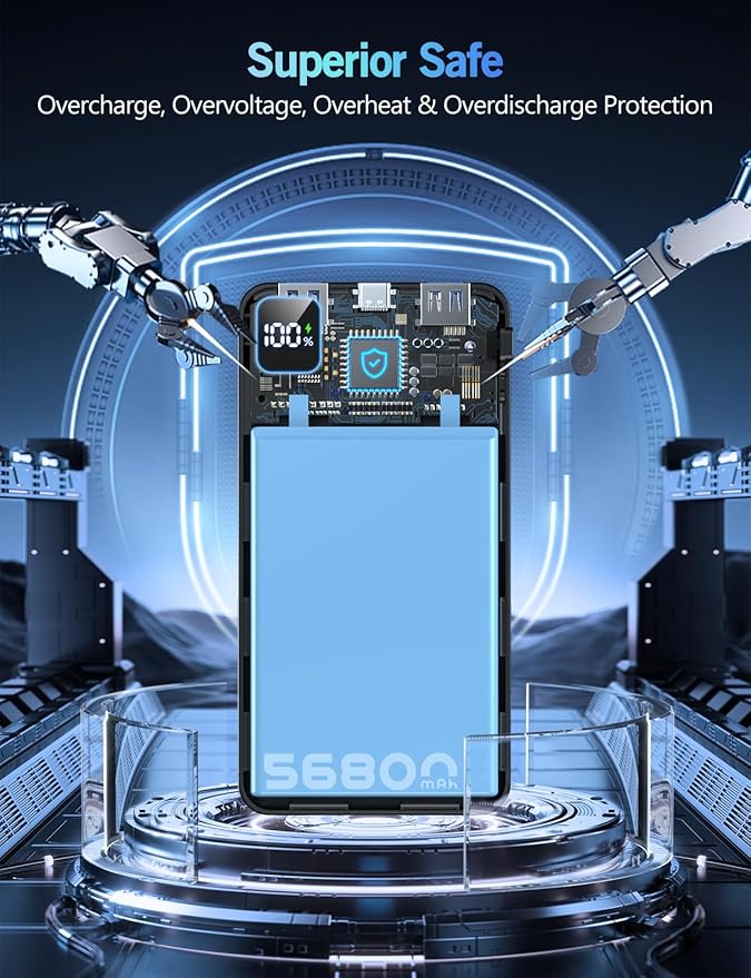 - 56,800mAh Ultra-High Capacity – Multi-Day Power Backup: Equipped with a massive 56,800mAh portable charger, this power bank ensures uninterrupted usage for days. It can keep your iPhone 16/15/14/13 series up to all day or keep a tablet powered for multiple full cycles. Ideal for camping, long-distance travel, or extended work trips where access to outlets is limited. Due to its extremely large capacity, this power bank cannot be carried on airplanes and is best suited for road trips, outdoor adventures, or emergency backup at home.