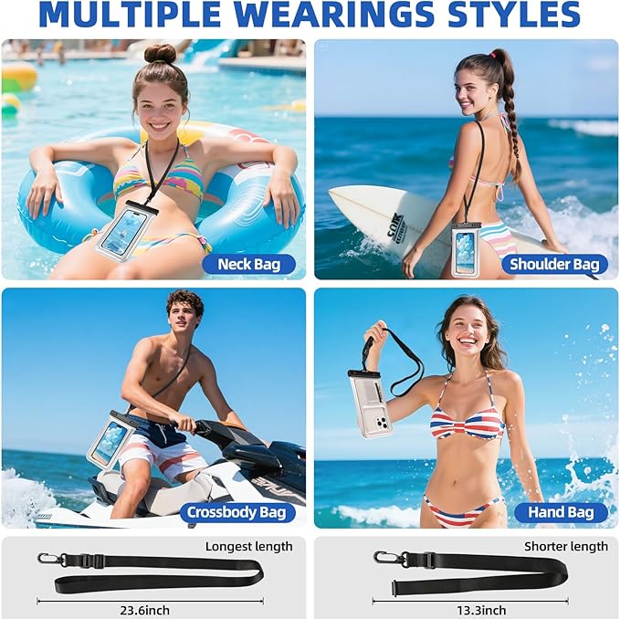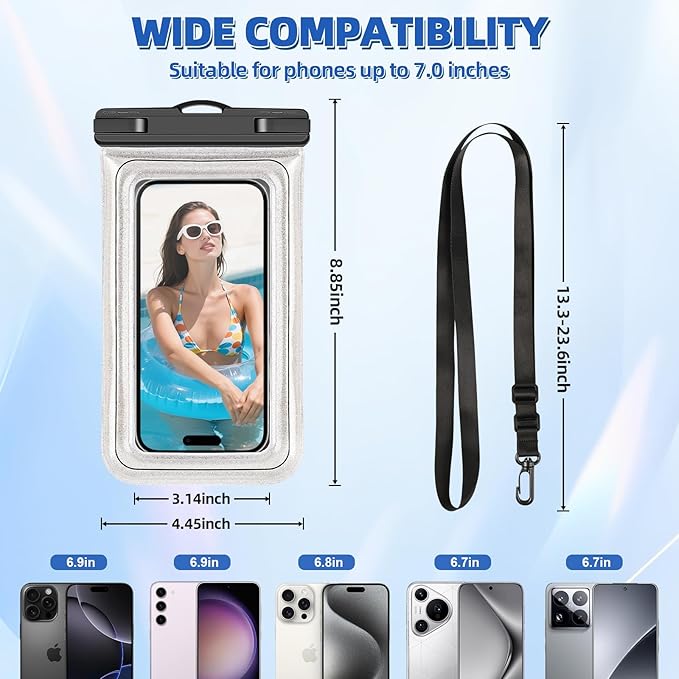 - Engineered with Built-in Buoyancy Technology- This dry bag automatically floats your 6.9-inch phone (supports up to 360g) using its sponge airbag design - ensuring instant water recovery during swimming, kayaking, or accidental drops while maintaining complete waterproof protection