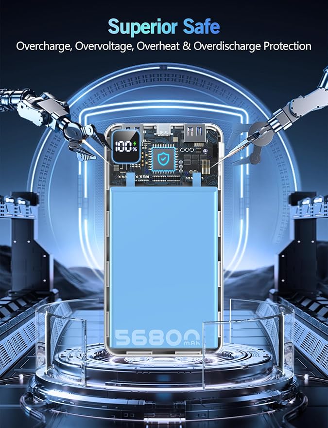 - 56,800mAh Ultra-High Capacity – Multi-Day Power Backup: Equipped with a massive 56,800mAh portable charger, this power bank ensures uninterrupted usage for days. It can keep your iPhone 16/15/14/13 series up to all day or keep a tablet powered for multiple full cycles. Ideal for camping, long-distance travel, or extended work trips where access to outlets is limited. Due to its extremely large capacity, this power bank cannot be carried on airplanes and is best suited for road trips, outdoor adventures, or emergency backup at home.