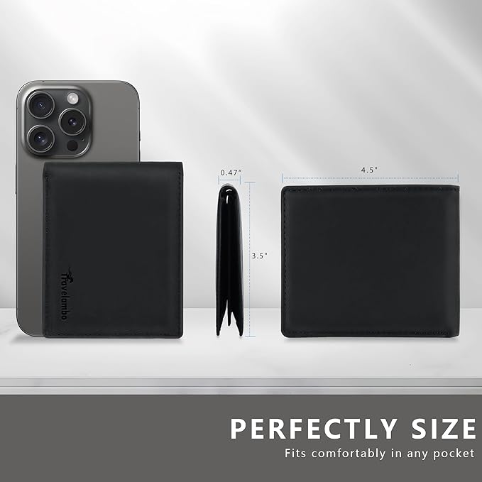 Travelambo Genuine Leather Wallet for Men with Gift Box - Handmade Bifold Stylish - Mens Wallets Rfid Blocking with 2 ID Windows