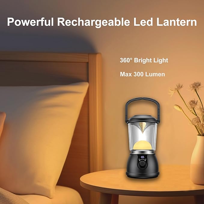 - Cut Through Darkest Nights: Use this 360 degree 300 lumen rechargeable lanterns for power outages will light up your whole room or tent, our camp lantern has long runtime with 150 hours in low light mode, also comes with 10 meters light radius of distance